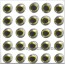 Bolsa de 70 ojos autoadhesivos, asimétricos color plata - amarillo, pupila negra y fondo holográfico para dotarlo de mayor realismo.